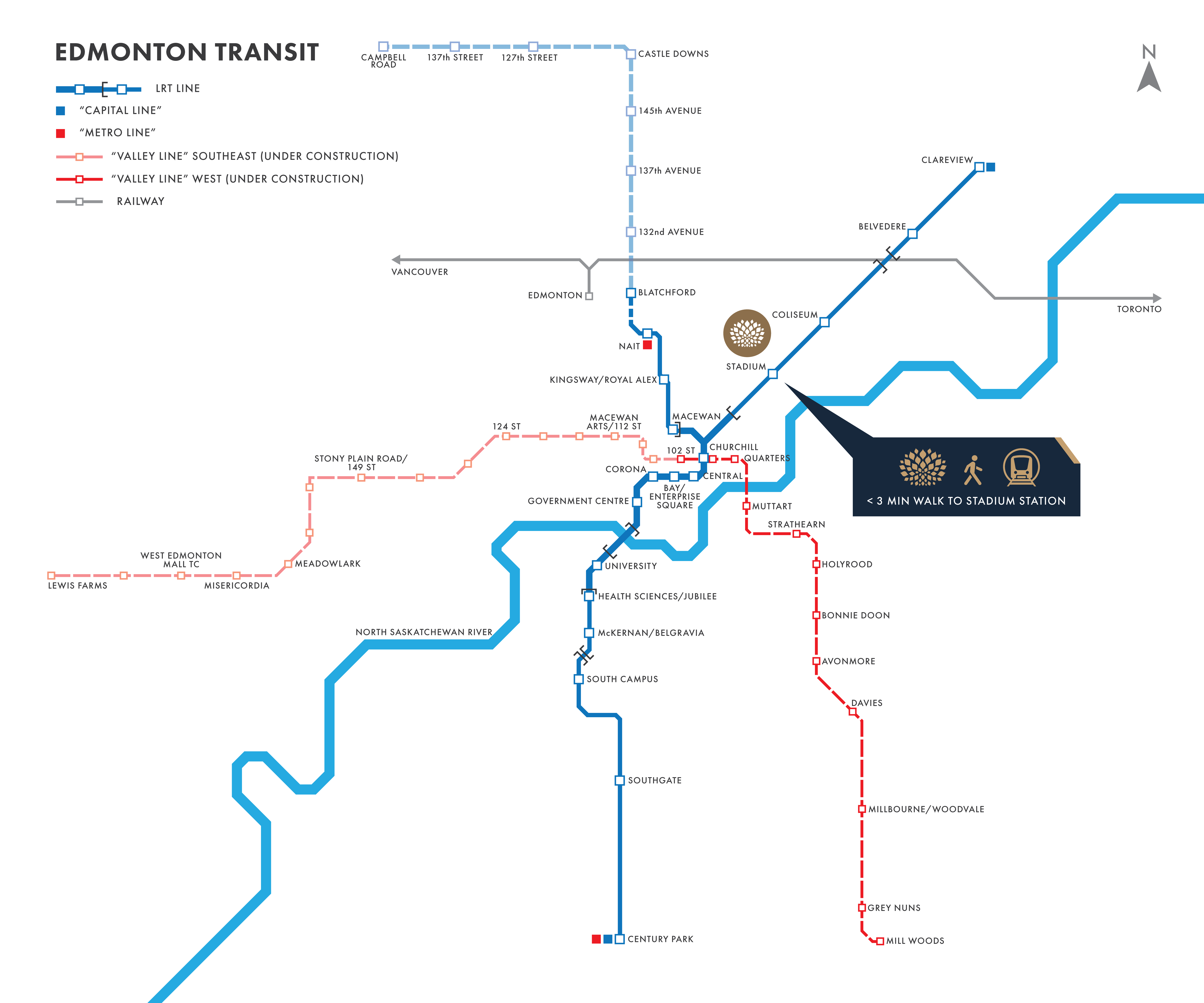 Upper Vista Edmonton is well placed within Edmonton’s Transit Service LRT corridor, with Stadium Station providing residents with direct access to high-frequency, convenient transportation in the area. Upper Vista’s proximity to high-quality LRT presents an opportunity to connect homeowners to the neighbouring branches of Edmonton, helping to transform the area in years to come.